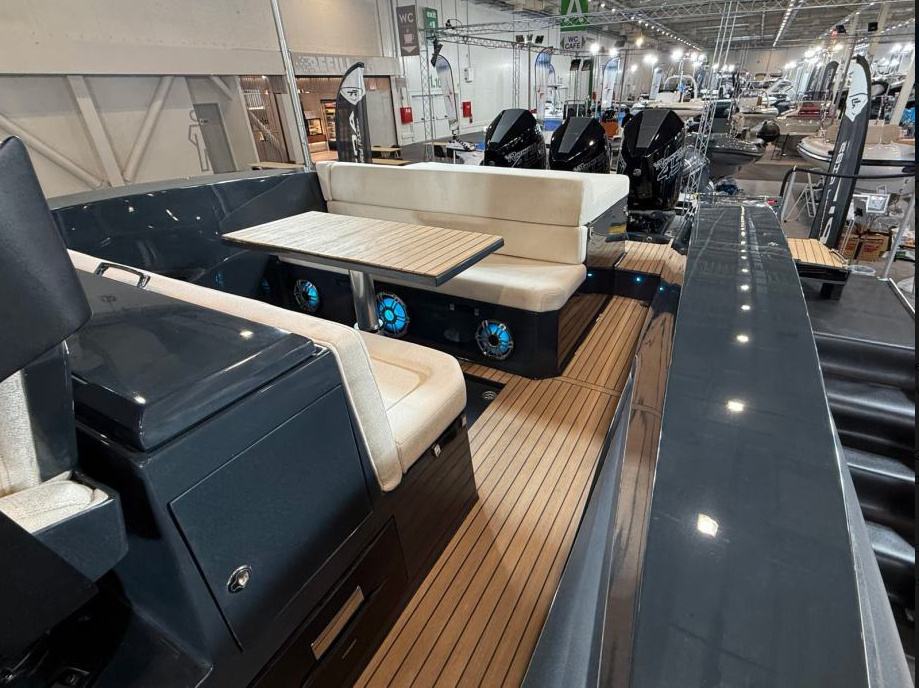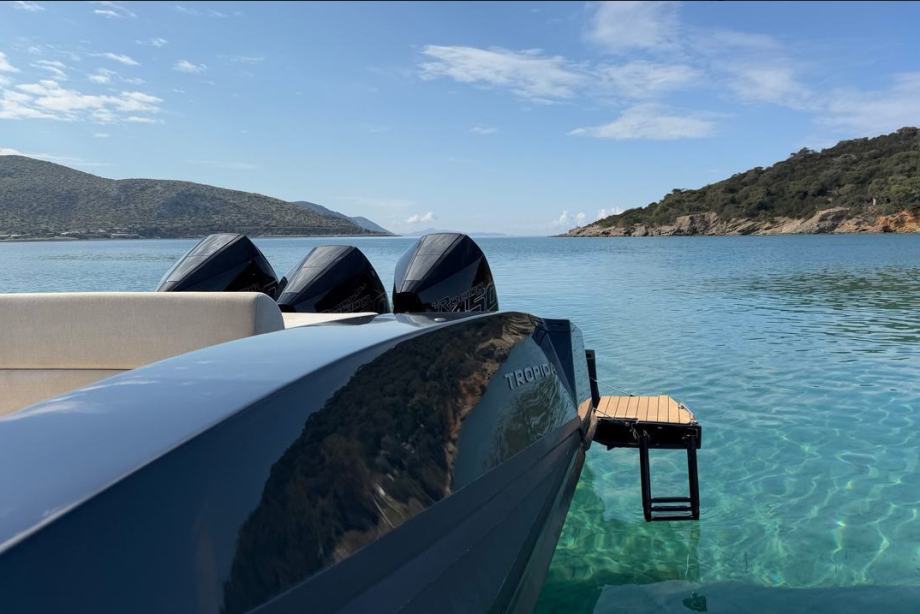 Brod ima mokri bar sa sudoperom i pločom za kuhanje, električni hladnjak, sklopivi stol, sunčanu terasu na pramcu, skriveno vitlo na pramcu i krmi te inovativnu električnu pramčanu pasarellu koja omogućuje jednostavan ulaz i izlaz iz broda.