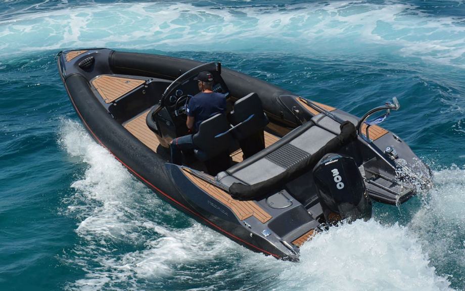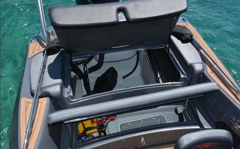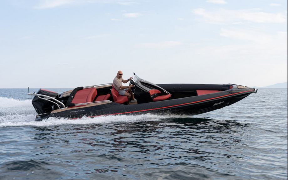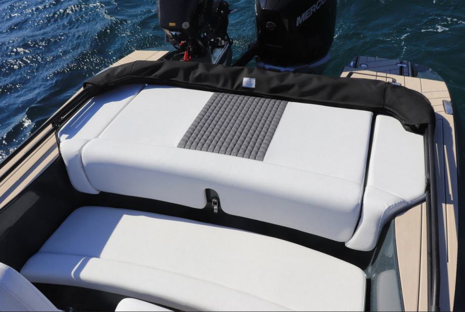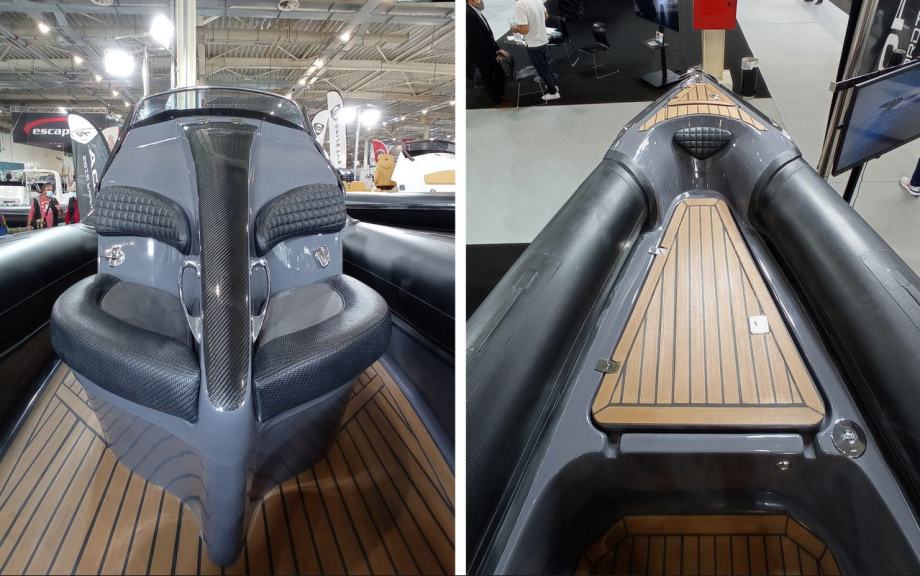 Tvrdi nos blisko prati aerodinamički profil plovila i završava pod oštrim kutom, dok su cijevi integrirane u krmu palube. Središnja konzola je atraktivna. Dva odvojena sjedala sprijeda i aerodinamični oblik daju jasnu svrhu plovilu. Nadzorna ploča presvučena je kožom.