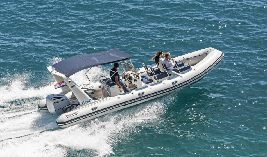 Prodajem Valiant 750 Vanguard, u odličnom stanju, održavan detaljno i sa pažnjom, sa full opremom (cool box, bimini top, jockey sjedala...), 2006.g, sa vanbrodskim motorom Honda 250, 2016. god., sa 1590 radnih sati, reodvito servisiran u Katunarica. Gumenjak ne zahtjeva nikakva daljnja ulaganja. Odličan za prijevoz gostiju na Modru špilju i turističke izlete jer ima ugrađena jockey sjedala, a uz brod dolaze i serijski ugrađivane provene klupe koje se spajaju u proveno suncaliste. Radi se o vrlo izdržljivom i jakom teretnom plovilu, prvenstveno namijenjenom za prijevoz većeg broja ronilaca sa opremom po bilo kojem vremenu. ****Odličan!! ***