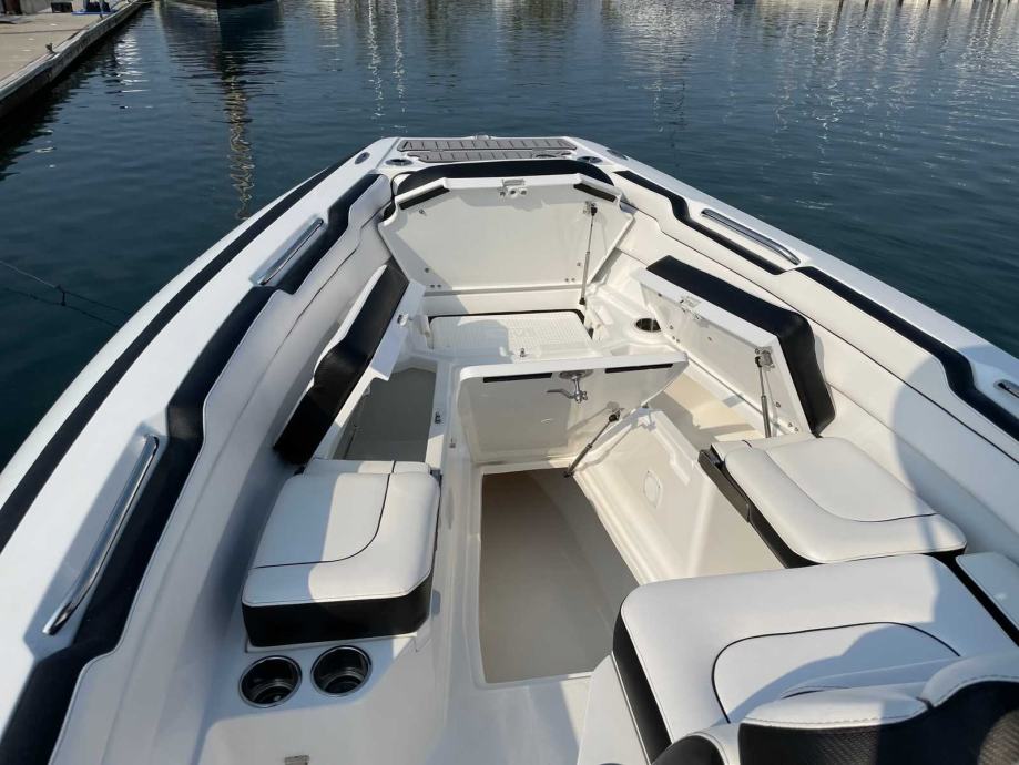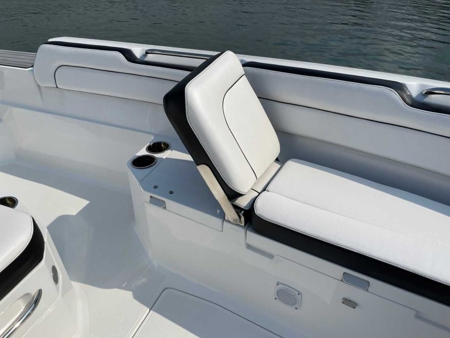 Built for fun, entertainment, and adventure, the Walker Bay 22 features an optional bow table that converts into a sunbed, an insulated cooler, multiple USB ports, and a premium sound system. It’s perfect for exploring with a 65-gallon fuel tank, offering up to 10 hours of cruising at 20 mph. For water sports, it’s equipped with a retractable ski pole, optional wakeboard tower, and ample storage for gear.