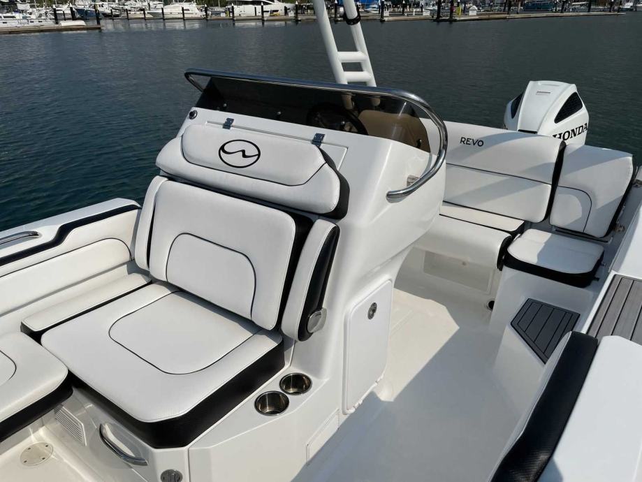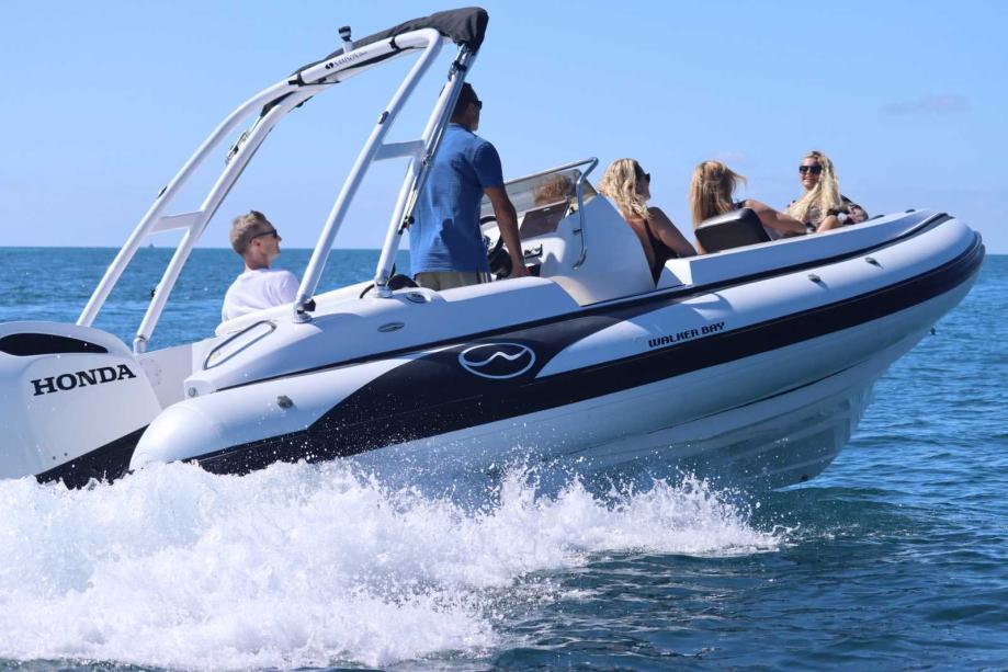 The Walker Bay 22 is the world’s first 22-foot luxury sport RIB, offering unmatched versatility and style for any adventure. This innovative boat combines the feel of a larger vessel with the easy handling of a smaller craft, thanks to its unique design. The helm is positioned toward the stern, creating a spacious bow area that enhances comfort, even in rough conditions. With a width greater than most boats in its class, the Walker Bay 22 offers the roominess and comfort usually found in larger boats.