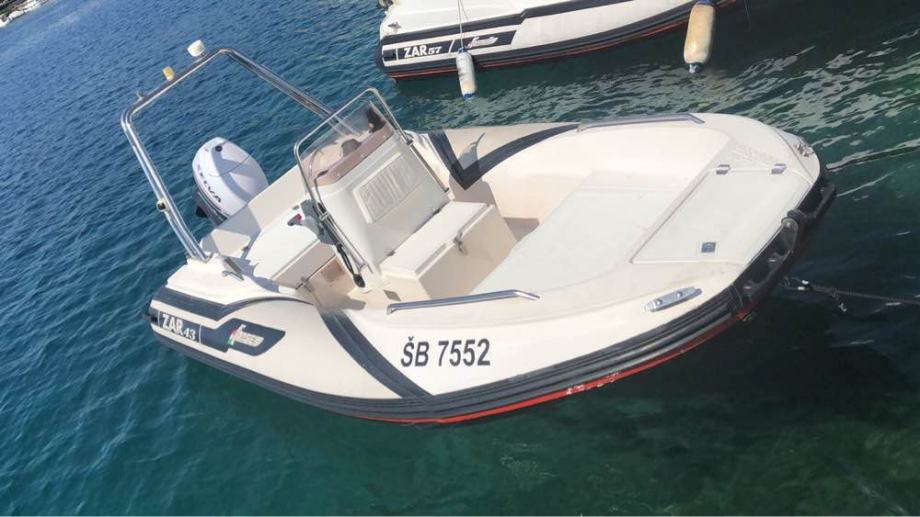 Gumenjak ZAR 43, 2009. godina, motor Selva (Yamaha) 4 taktna, 40/60 KS 2010. godina. Ima oko 700 radnih sati. Novi jastuci. Nije bio u charteru, koristen u privatne i obiteljske svrhe. Motor je uredno servisiran i održavan. Prodaje se bez prikolice.