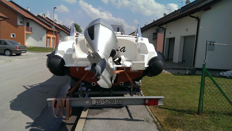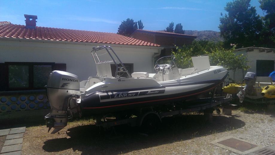 Prodajem gumeni čamac marke ZAR FORMENTI 57 WELLDECK. Ovo je prvi primjerak ovog modela u Hrvatskoj koji je ujedno bio izložen na Boat Show-u na Zagrebačkom Velesajmu 2007. godine. Prvi u Hrvatskoj znači i 7. u svijetu, što potvrđuje jedinstveni serijski broj brodice. Gumenjak je korišten u svrhu dnevnih izleta na području Kvarnera. Oba motora su servisirana u ovlastenom servisu i imaju servisne knjizice koje to potvrduju. Motor ima 300 sati rada. Guma je očuvana, dno bojano i plastika polirana pred svaku sezonu. Gumenjak je proveo tri mjeseca ljeti u moru, ostatak na suhom vezu, ispod zimske cerade. Uz gumenjak ide sva dodatna oprema koja se u danom trenutku mogla naručiti: od prednjeg i stražnjeg ležaja, jedećeg stola, biminija (po narudžbi crni bimini radi boljeg hlada), prednje sidro od nehrđajučeg čelika (inox, 8 kg), pomoćni motor marke HONDA 2.3 KS, 12 pojaseva za spasavanje, tuš sa slatkom vodom, GPS, Fusion radio s 4 zvučnika (s AUX ulazom), zimska i ljetna cerada, 2 akumulatora, radio stanica te mnoštvo drugih dodataka. Ova marka gumenjaka ima najbolju iskoristivost prostora te daje najveću vrijednost za vaš novac. Izuzetno je siguran i stabilan u svim vremenskim uvjetima na moru. Uz gumenjak prodajem i prikolicu koja je rađena po mjeri i registrirana.