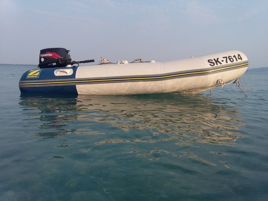 Prodajem gumeni čamac ZODIAC C 310 S, bez motora, proizveden u FRANCUSKOJ 2007 godine, korišten 3 tjedna godišnje, čamac je u izvrsnom stanju,V dno na napuhavanje, trajno registriran. Uz čamac idu vesla, pumpa, kotači za transport, klupica, tenda