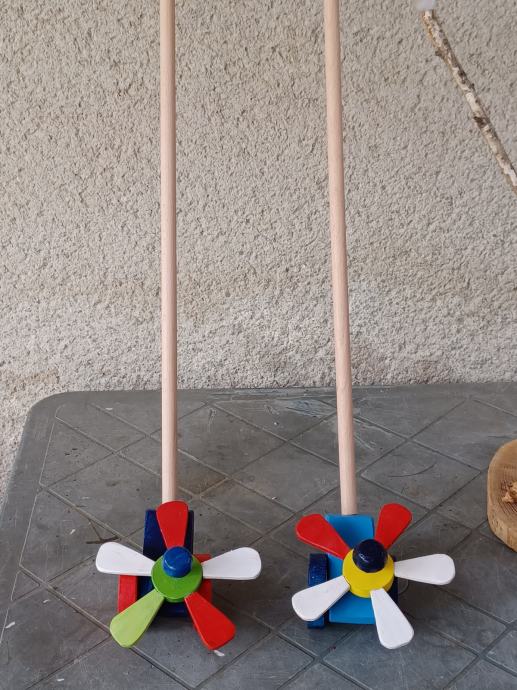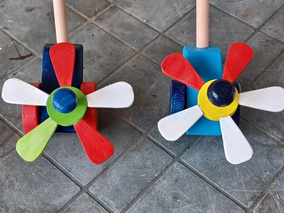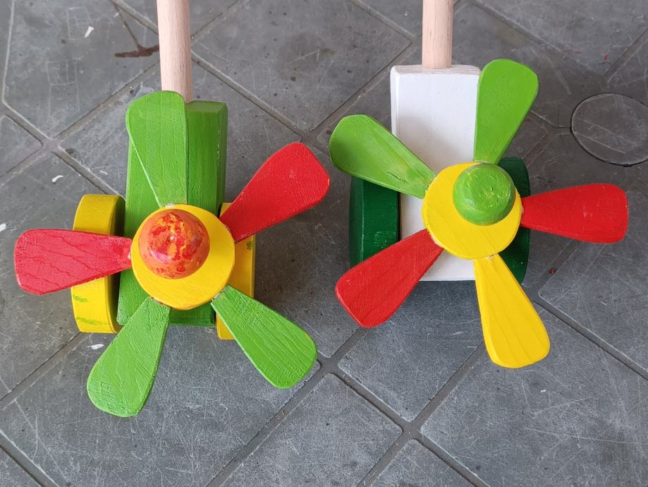 Dječja igračka, drveni cvjetić u raznim bojama koji se vrti guranjem
