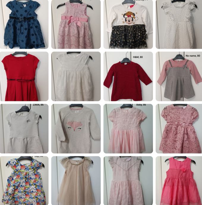 Prodajem očuvane, neke i nove, haljinice za djevojčice brojeva 74, 80, 86 i 92.