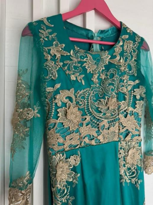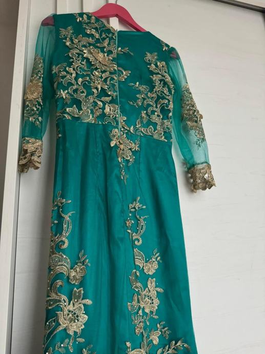9. i 10. slika Duga zelena haljina sa cipkom , veličina M - 20eura