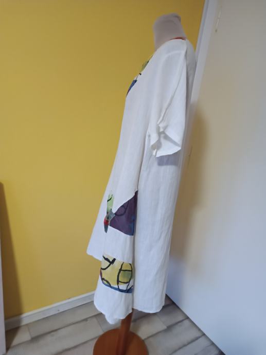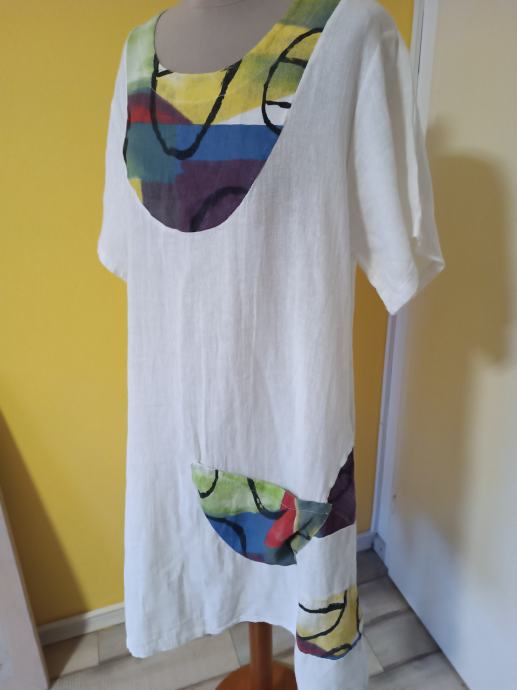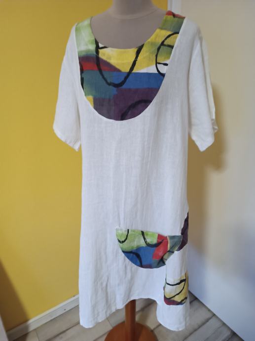 Posebno lijepa lanena bijela haljina sa zgodnim apstraktnim uzorkom. Savršena za ljetne dane.