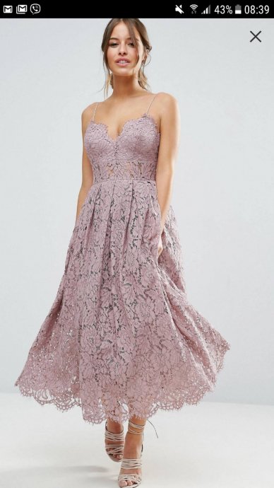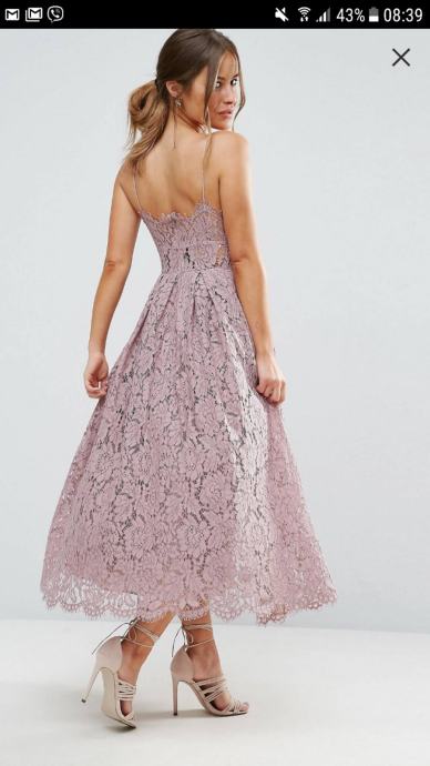 Prekrasna Asos čipkasta haljina midi dužine nošena samo jednom, u savršenom stanju, idealna za posebne prigode.