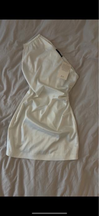 Predivna dizajnerska haljina bijele boje, potpuno nova s etiketom, veličina 36. Elegantnog je kroja bez rukava i duljine iznad koljena, savršena za posebne prilike. Ova haljina predstavlja vrhunski dodatak vašoj garderobi.