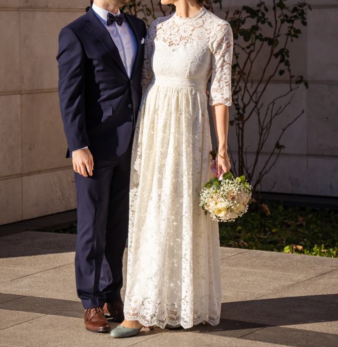 Iako je nošena jednom na vjenčanju nema vidljivih tragova nošenja. Šaljem još slikica na upit.