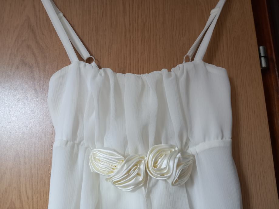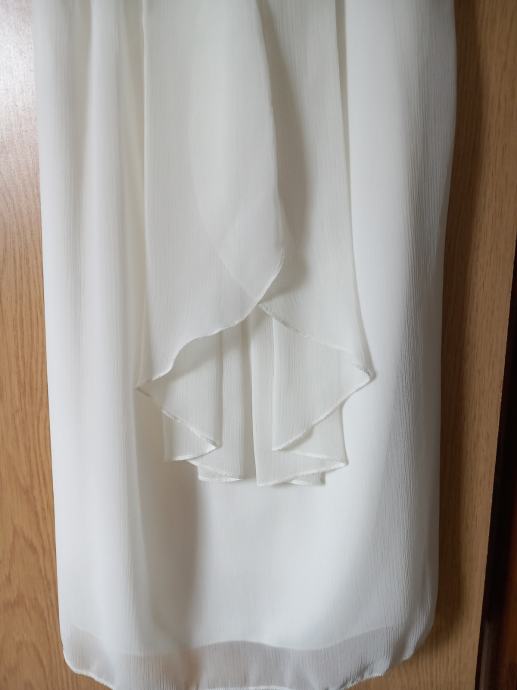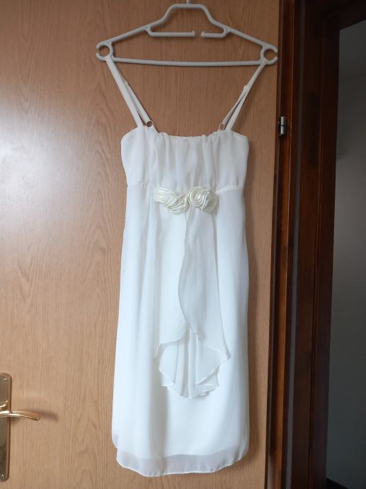 Bijela svečana ljetna haljina, može se nositi i kao tunika, na bretele, sa svilenim cvjetovima s prednje strane, nikad nošena. Veličina 34-36. Cijena 15 EUR. Ne prodajem preko PayProtect. Info 0917912699.
