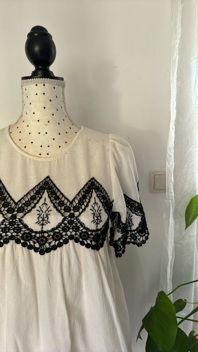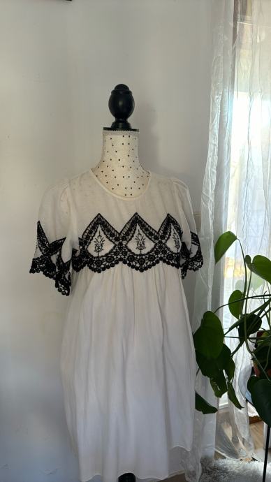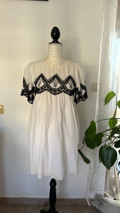 Preslatka bijela haljina s crnim čipkastim detaljima iz Zare, kao nova.
