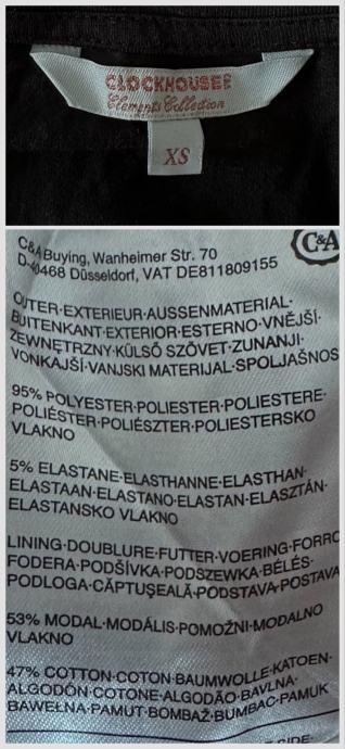Mjere: dužina 116 cm, dužina gornjeg dijela 43 cm, ramena slijegana, prsa 46-53 cm, struk 34-45 cm.