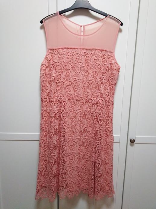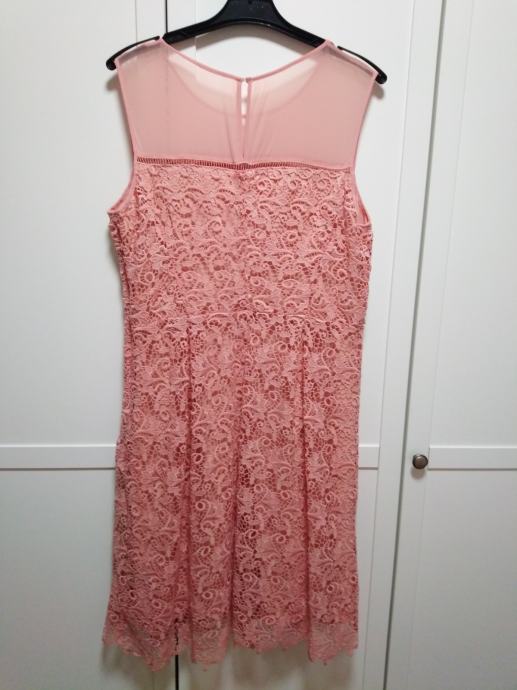 Čipkasta haljina s podstavom, prljavo roza, jednom nošena, do koljena.. 095 1979432