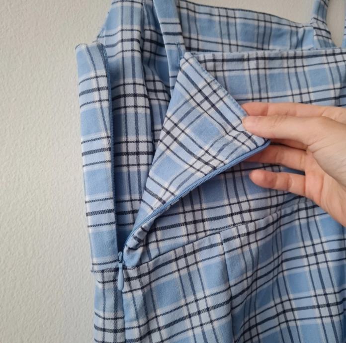 Ima patentni zatvarač na lijevoj strani. Naramenice su podesive.