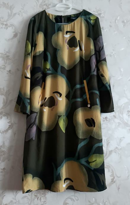 Floral print haljina, loosefit kroj, kosi džepovi sprijeda, rukavi 4/5.