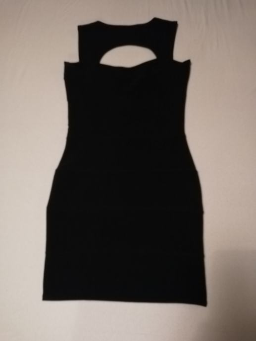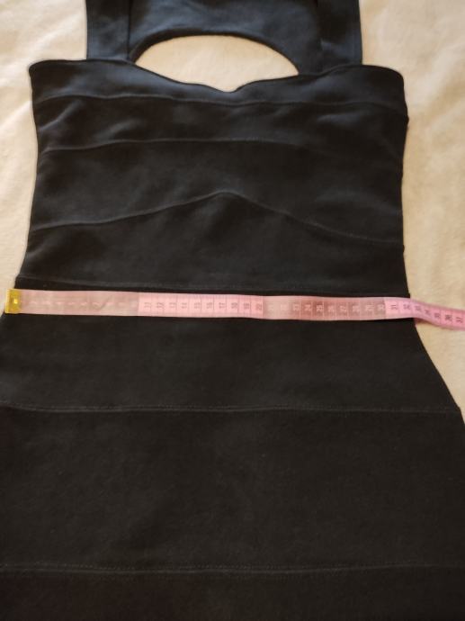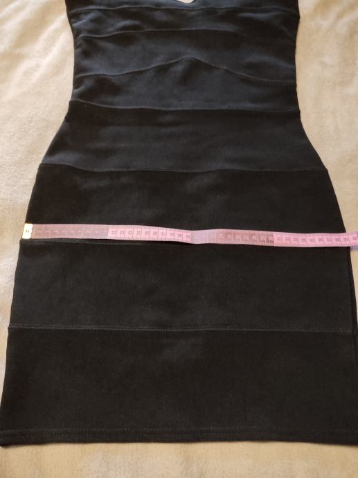 Crna elastična haljina, prati liniju tijela. Nošena jednom. Ima otvor na leđima. Veličina otprilike S, na slikama su dimenzije. Imam u oglasima istu takvu roza boje, mrvicu je veća. Ako se uzimaju obje cijena je 14 eura. U Zagrebu i Karlovcu moguća je primopredaja. Pogledajte i ostale moje oglase, na više kupljenih stvari popust.