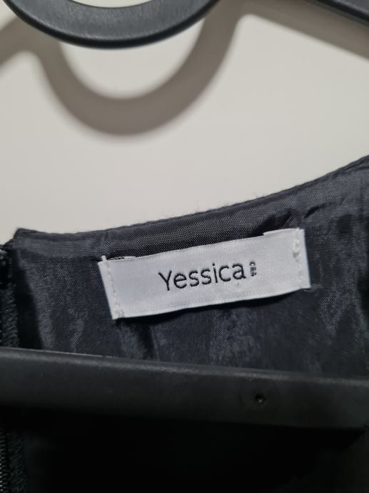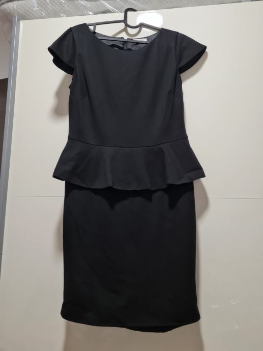 Lijepa crna haljina, može biti poslovna, a i za neku formalnu prigodbu. Otparala se dolje na rubu na jednom dijelu, nije poderano, samo ju treba sašiti. Nošena je ali očuvana i ima cif na leđima. Kupljena je u C&A. Nema etiketu, ali moja procjena je da je veličina 38-40.