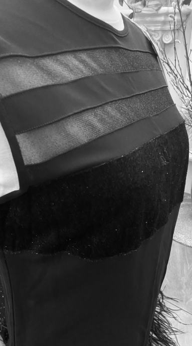 Svečana, urbana,koktel moderna i elegantno provokativna , ugodna (viskoza i10% spandex) i lagana za održavanje je haljina iiz kolekcije dizajnera kuće visoke mode iz Italije, poznate po kvaliteti materijala i poznavanju prioriteta kod moderne, samouvjerene žene, koja privlači pažnju seksipilom, neupitnom elegancijom s “must have” detaljom koji sveukupan izgled podiže još više….. i da, perje je pravo..