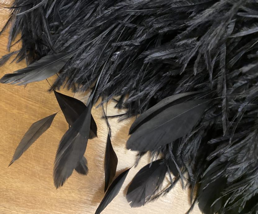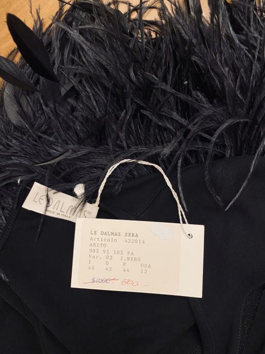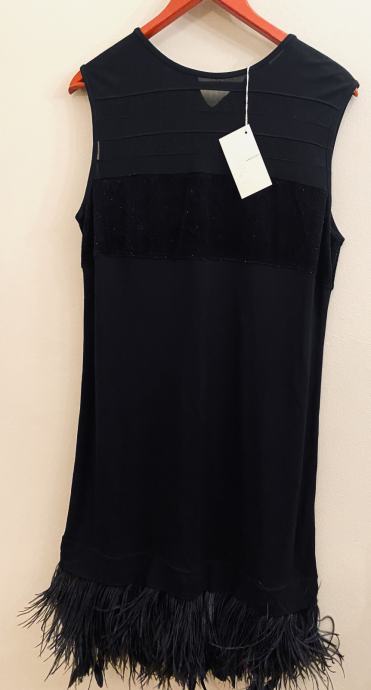 Crna haljina s perjem vel M/L dizajnerska svečana elgantna NOVO Italy