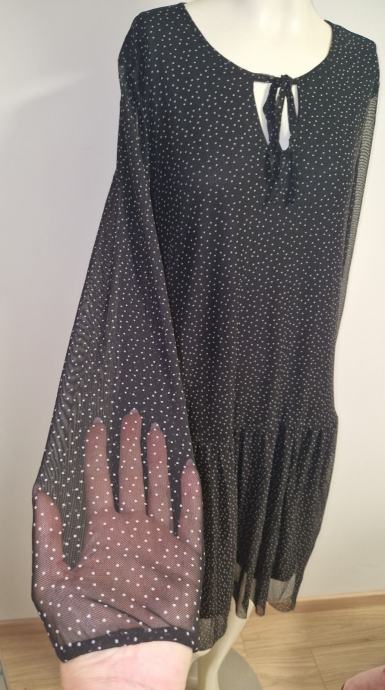 Crna nova haljina s točkicama, prozirni rukavi. Idealna za neku svečanu priliku.