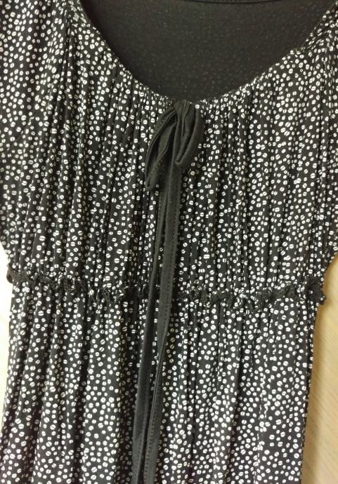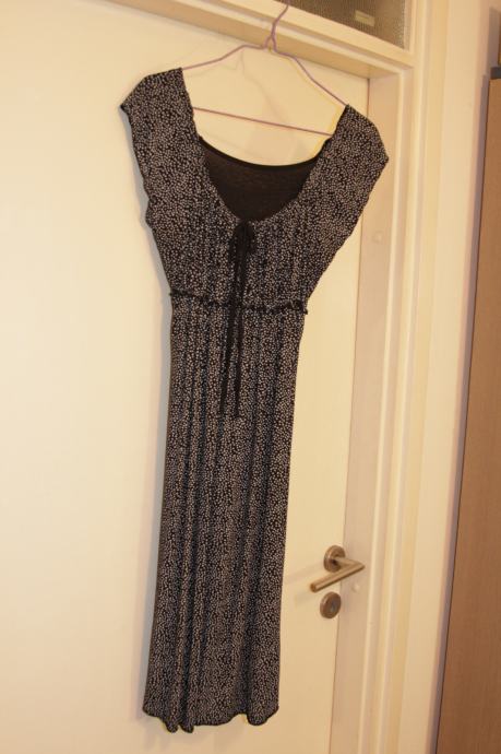 Posebna i slatka crna haljina do ispod koljena koju krasi bijeli print - uzorak kava.