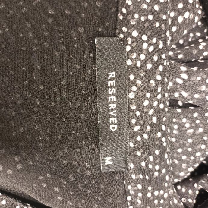 Crna midi haljina dugi rukav 38 Reserved na sitne točkice bezvremenska klasika, vrlo otmjena jer ne pokazuje dekolte i pristojne je dužine, odlično se može izkombinirati sa visokim čizmama na tanju petu za večernji izlazak ili na kombat vojne čizme za svakodnevicu, u cijelosti podstavljena ne prozire se, prozračna, ima detalje u šivanju u predjelu grudi, kopča se kao velika košulja cijelom dužinom malim gumbićima koji su presvučeni istom tkaninom za decentniji i elegantniji dojam, preporučam nošenje sa crnim remenom za naglašavznje struka, komotni modrl koji odgovara i 40 i možda 42.Duljina mjerena po sredini leđa zadnji dio 124cm a prednji od dekoltiranog dijela 124cm duljina od pazuha do dolje 98cm
