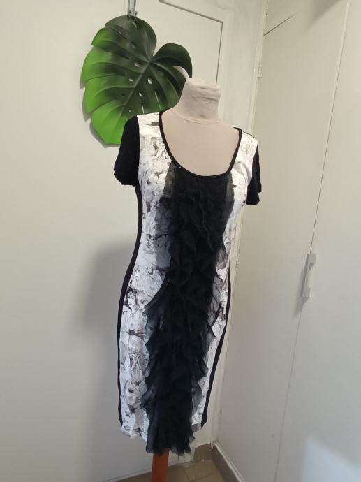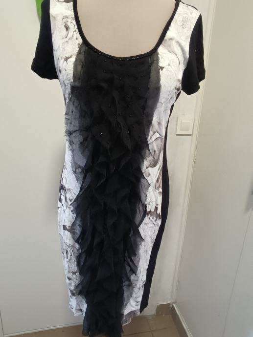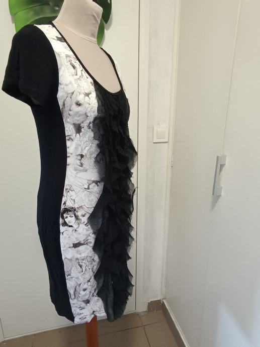 Vrlo neobična crna haljina s uzorcima lica. Ispred ima volanasti dio koji joj daje posebnu čar. Rađena od viskoze. Budite in.
