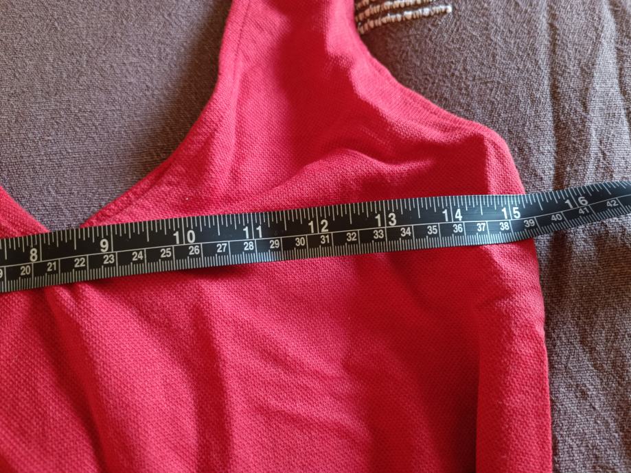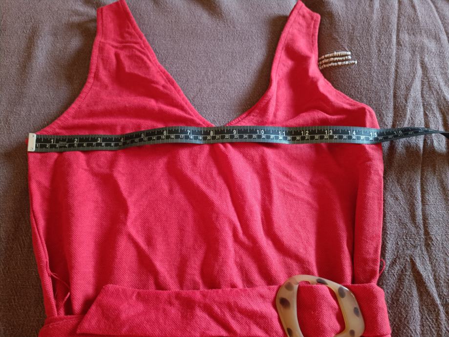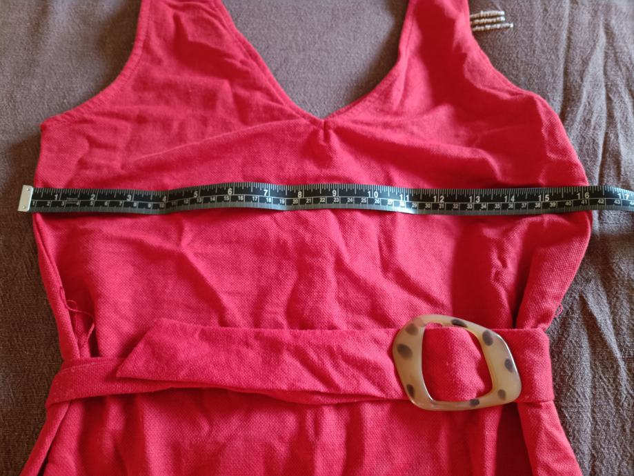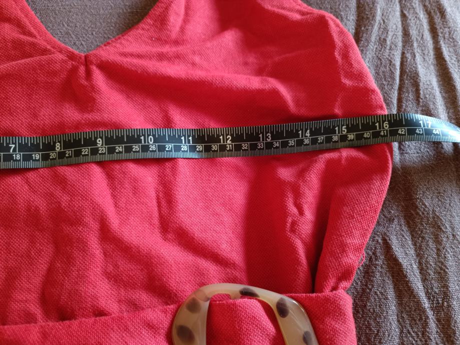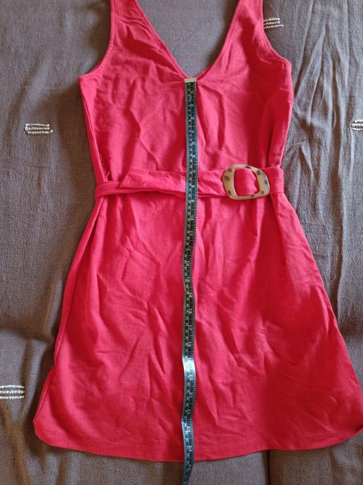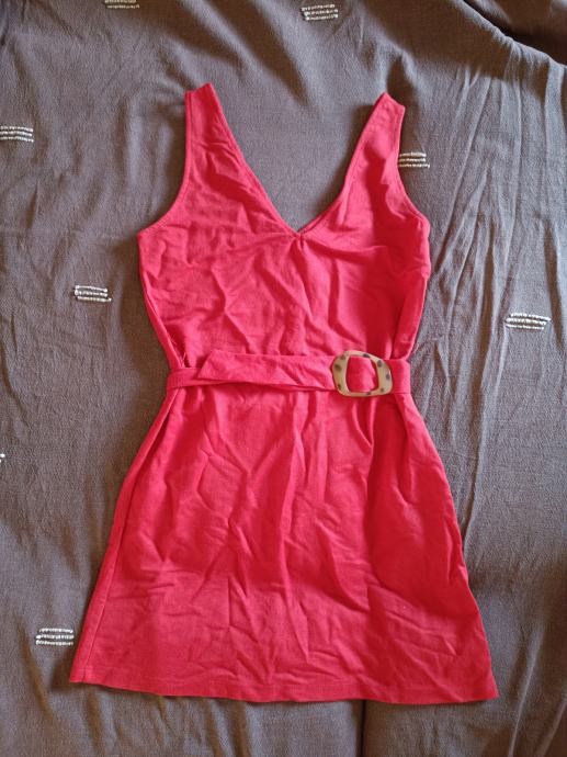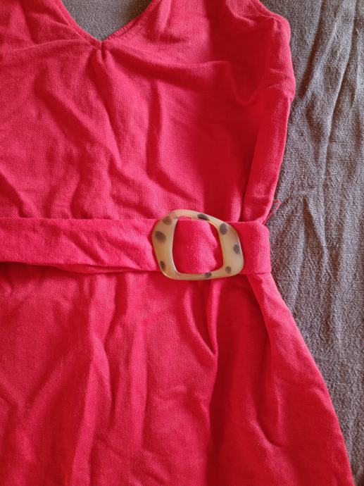 Crvena haljina bez rukava veličina S/M, vezanje u struku s remenom, gumbići.