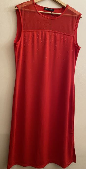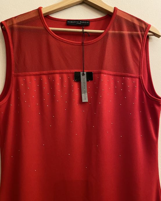 Svečana i dnevna, za sve prilike, idealna za putovanje, bez rukava. Veličina 40-42-44 zbog ravnog kroja. Materijal je mekan i jako lijepo pada. Do /ispod koljena je, ovisino visini osobe. R. Puccini dizajnerska koktel haljina, s mrežastim dijelom i rasutim cirkonima na prednjoj strani. Može se nositi sa i bez remena, lako se održava, ne gužva se. Made in Italy, ovog poznatog brenda. NOVA.