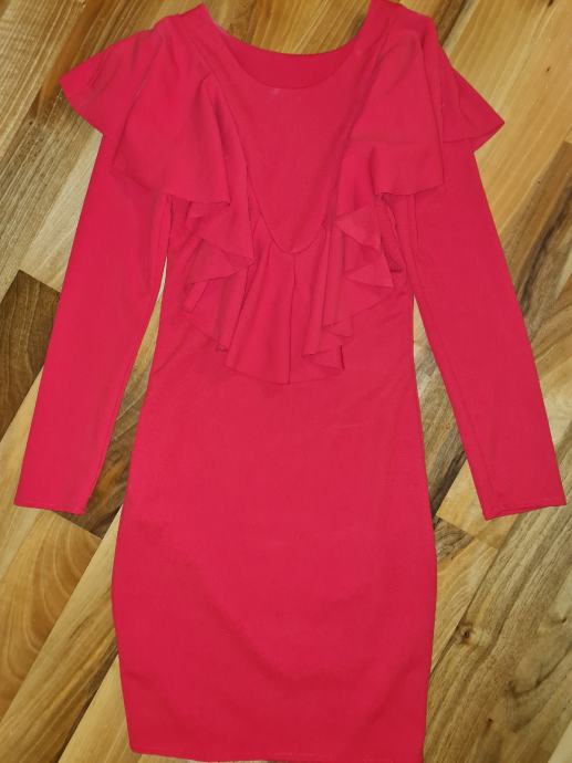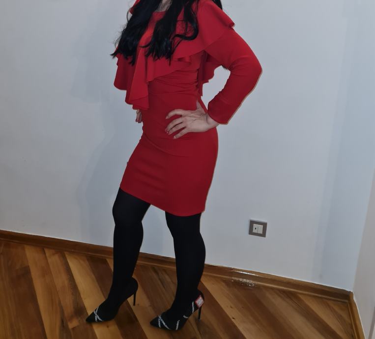 Predivna,crvena haljina s volanom....univerzalna veličina ali najbolje za S,M....jednom nošena, kao nova...skupo plaćena