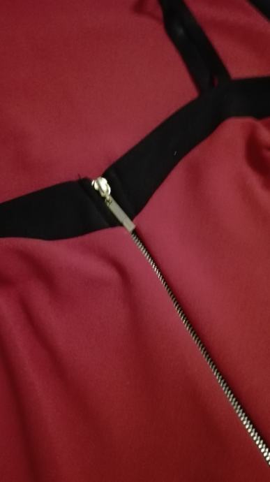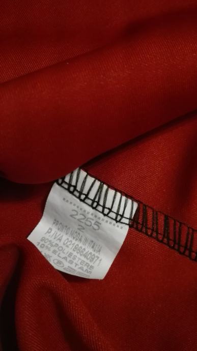 Prodajem novu crvenu majicu, vel.S, sastav: 90% poliester, 10% elastin. Mjere: širina grudi 34cm, širina struka 30cm, dužina haljine 69cm.