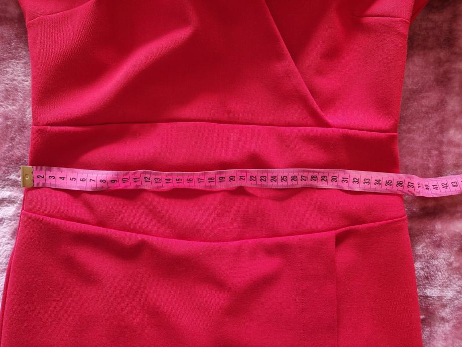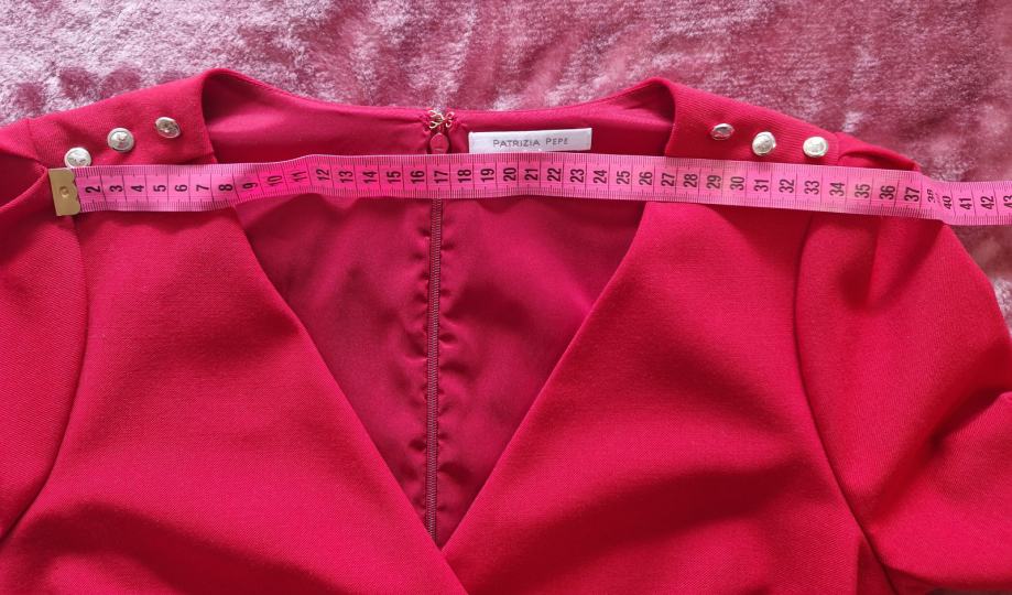 Crvena nova haljina Patrizia Pepe, veličina 42 piše, što po meni nikako nije, nego manja, zato sam stavila mjere.
