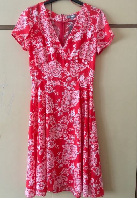 Crvena ljetna haljina s bijelim uzorkom nova M, marka "Love" London
