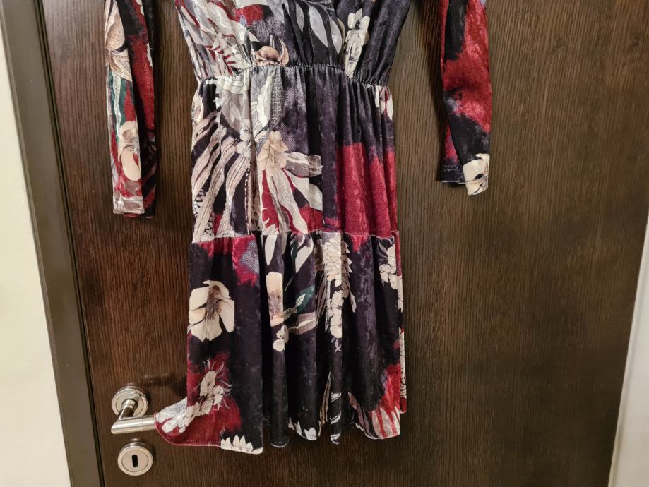 Prodajem cvjetnu haljinu xs/s od pliša-velura, V izrez,na volane.