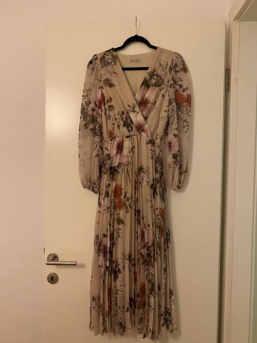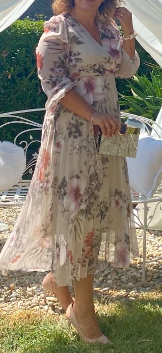 Veličina haljine je 38 a odgovara približno M (medium) veličini, cvjetnih tonova.
