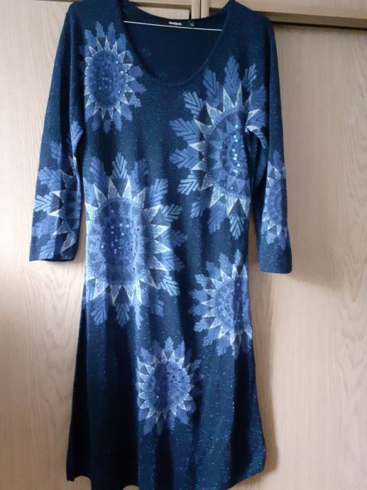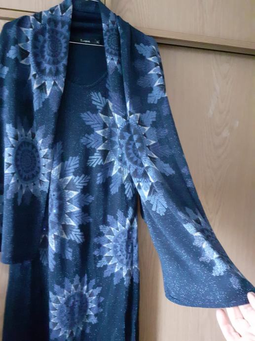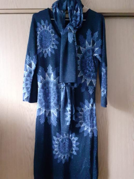 Prekrasna viskozna Desigual haljina dugih rukava sa šalom. Vrlo mekana i prati liniju tijela. Ima presijavajuće detalje Odgovara vel 38/40 pazusi 46 cm (bez rastezanja) dužina 98 cm