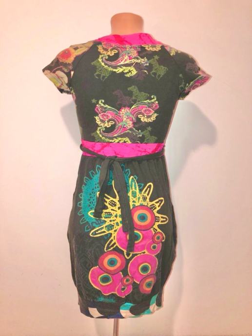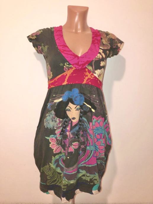 DESIGUAL prelijepa pamučna haljina gejša, vel.S, u odličnom stanju. Haljina je uža u gornjem dijelu, prema dolje se širi i završava s pasicom. Ima bočne džepove i ima u struku vezice za dodatno strukiranje, predivna uživo.