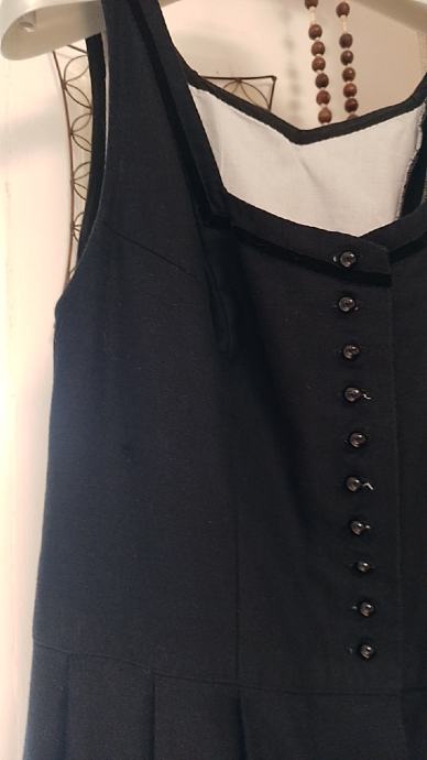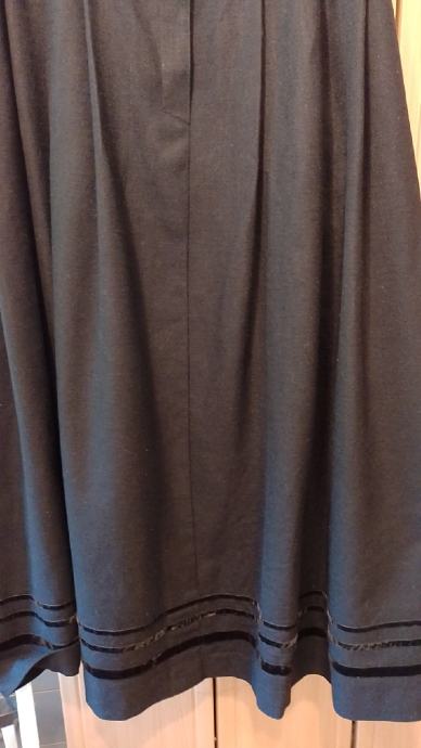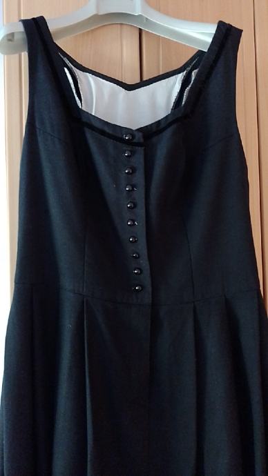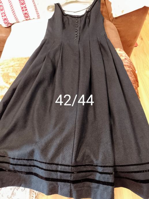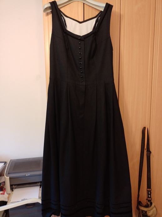 Šivana po mjeri ,od debljeg crnog štofa.Dužina 132,struk 43/44,ispod pazuha 50.Zapela sprijeda,slikano.Ostalo kao novo.Svježa crna boja.