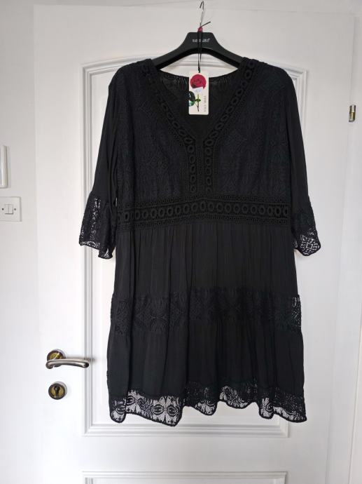 Divna nova crna haljina tunika Italy od čipke broj univerzalan L - XL