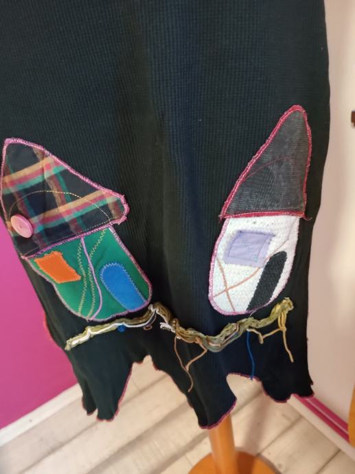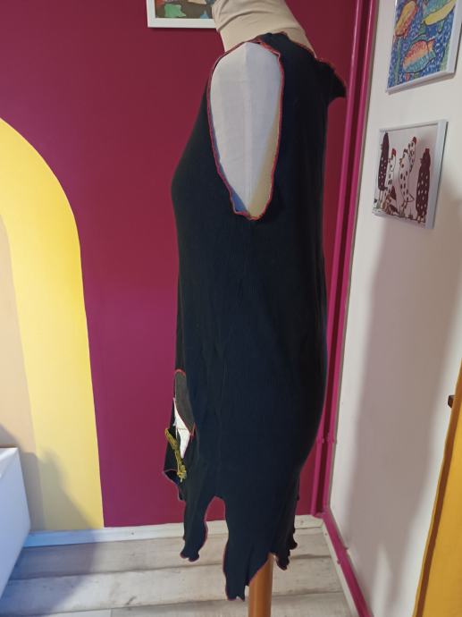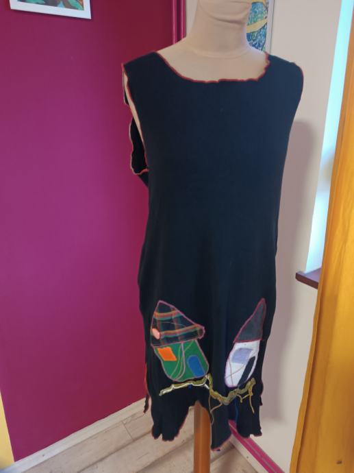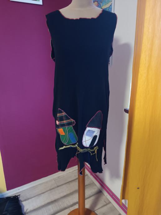 Dizajnerska haljina s kućicama. Upečatljivi model. Mekani materijal.