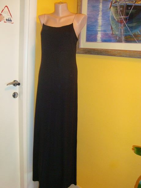 Vrlo lijepa duga crna haljina sa tankim srebrnim bretelama, modne marke Benetton.