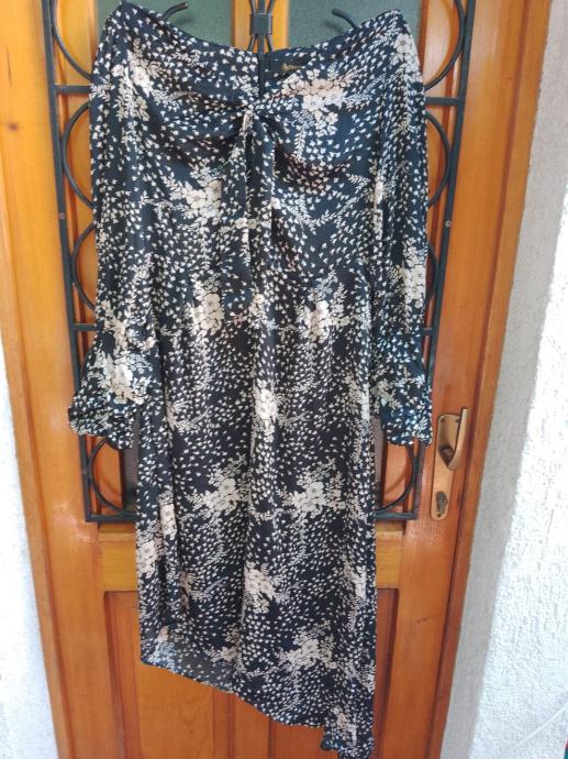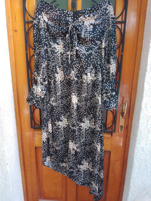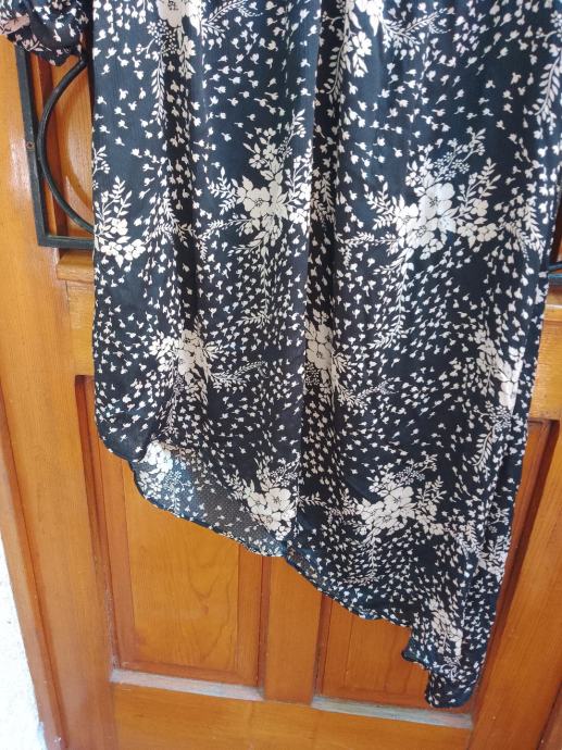 Lagana tanka duga ljetna haljina materijal poliester, pod rukom kao til , ispod tanka podstava ali nije prozirna. Nova . Marka ADtwenty. Deklarirana veličina M, ali je za realni 36 ili jako mali 38. Na dnu asimetrična. Cvjetni dezen, crno-bijele boje. Rukavi 3/4 , pri dnu pufastiji. Za duge ljetne šetnje ili za plažu . 4 eur+ pt.
