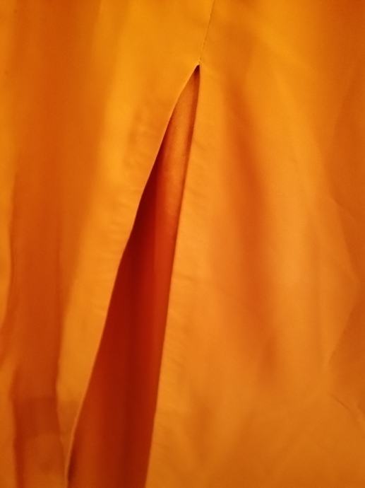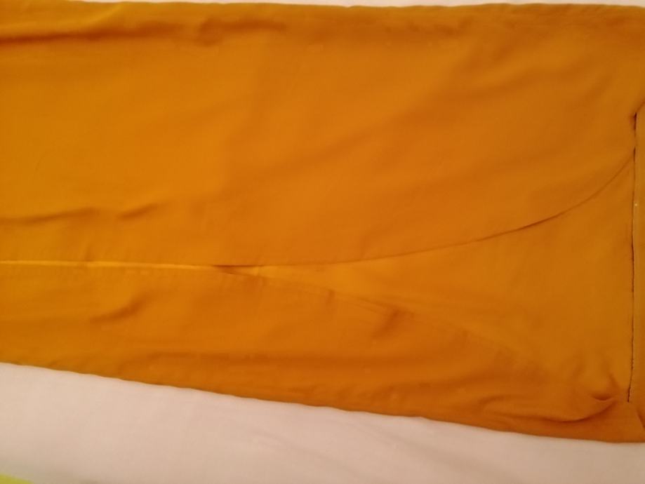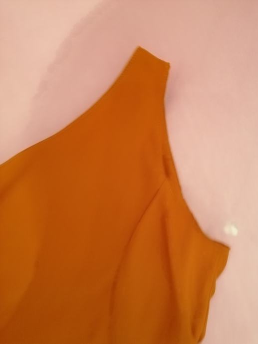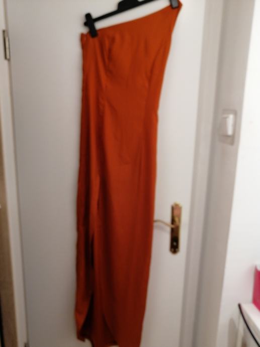 Prodajem haljinu jednom obučenu za maturalnu večer. Haljina je duga i uska, narančaste boje, bez oštećenja i fleka.