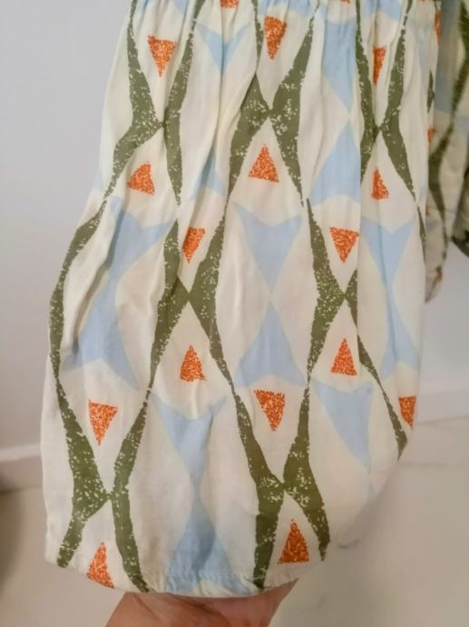 U kombinaciji bijele, narančaste, svijetlo plave i khaki zelene boje.