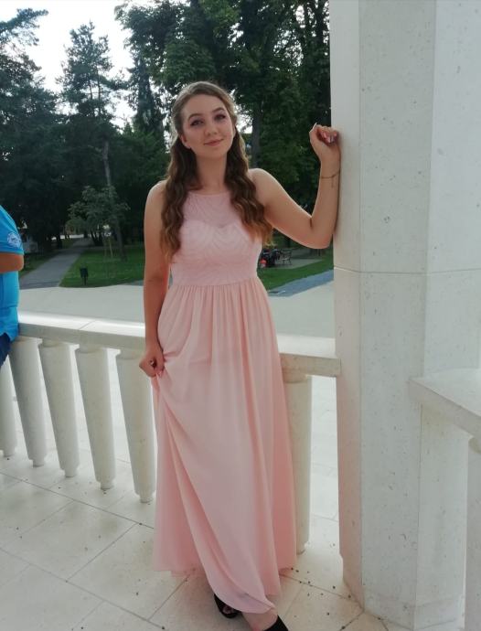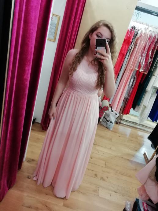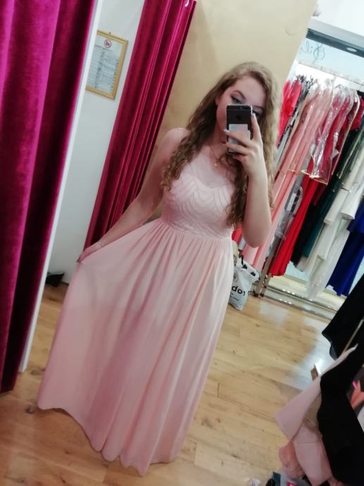 Prodaje se duga svečana haljina, jednom nošena. Boja baby-roza.