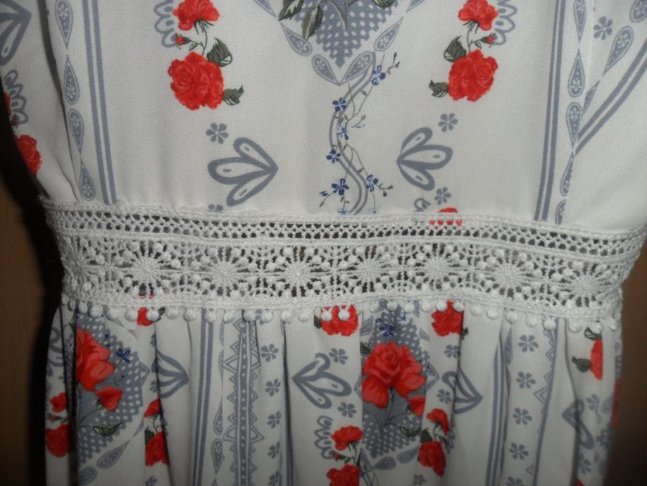 Nova ljetna dugačka haljina s podstavom iz H&M, bretelice podesive, širina čipkanog dijela ispod prsa 36 cm, od pazuha do pazuha 42 cm, bočno ima prorez od iznad koljena do dolje, na leđima se dodatno veže, raskošna, ukupna duljina cijele haljine 130 cm, ispod pazuha cif, oprana, jako povoljno, realna veličina 36