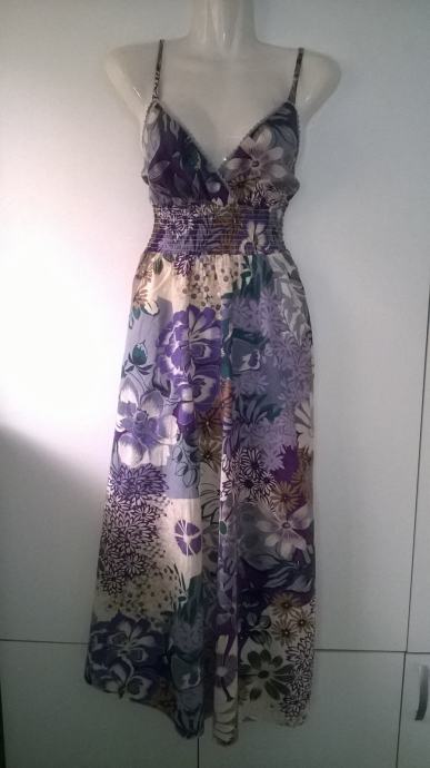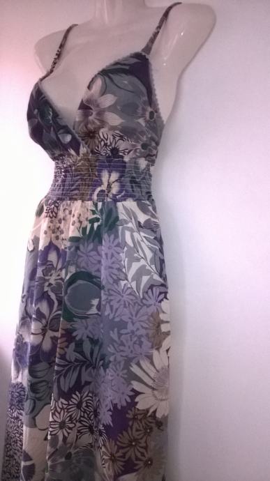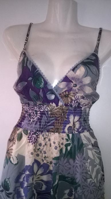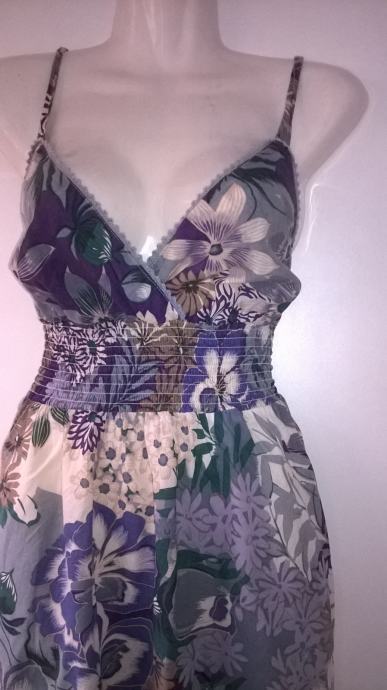 ELISA IMMAGINE dugacka cvjetna pamucna haljina na bretelice, vel. M. Ispod prsa naprijed i odzada su zabice. Sirina prsa ( samo prednja strana): 47 cm, duzina haljine: 103 cm od ispod ruke.