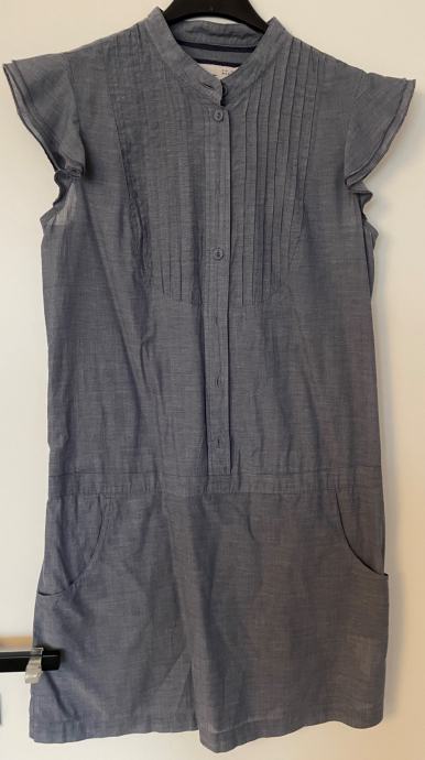 Prodajem Esprit laganu haljinu u veličini 36. Dosta je komotna tako da odgovra konfekcijskom broju 36-40. Širina u prsima je 98 cm, u struku 88 cm, a duljina je 90 cm. Boja je sivkasto-plava. Materijal 100% pamuk.